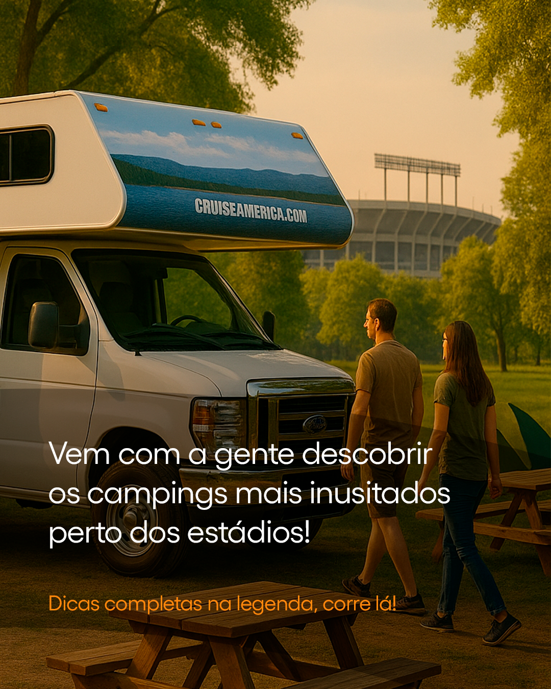 A Copa do Mundo de 2026 vai além dos estádios! Que tal viver essa emoção de motorhome nos campings mais inusitados das cidades-sede?