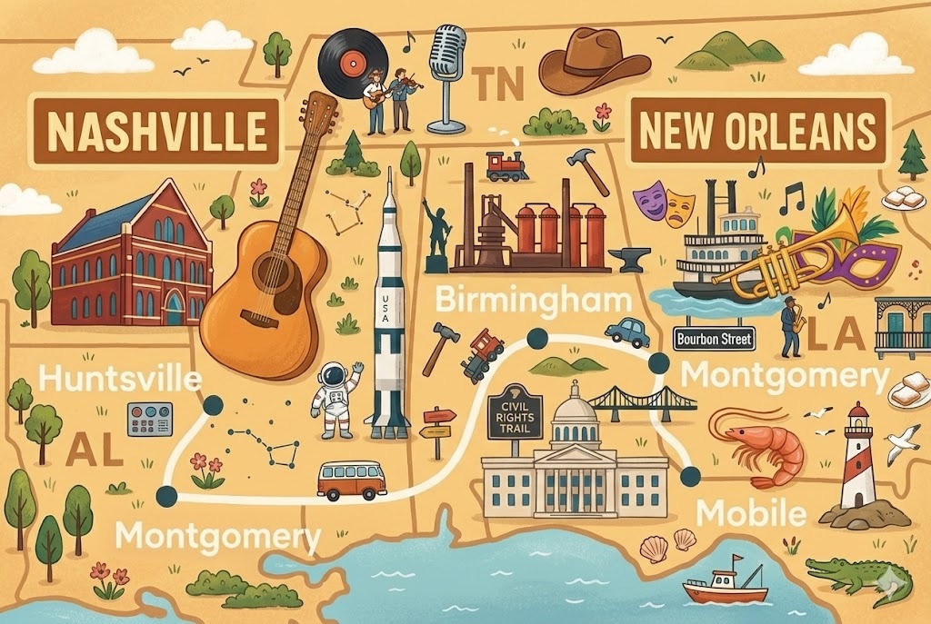 Dia 3: Nashville (TN) → Huntsville (AL)
